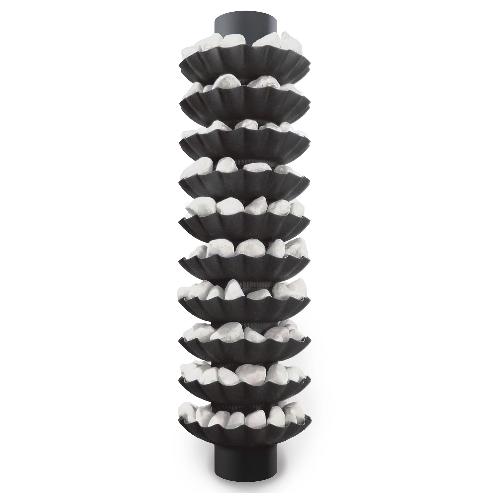 В конструкции отсутствуют элементы каких-либо сеток и решеток. Камни свободно располагаются вокруг горячего дымохода в элегантных чашах из нержавеющей стали. Каждая чаша представляет собой дождевальное устройство. Оно распределяет подаваемую воду тонкими душевыми струйками по всему периметру каменки так, что в парообразовании участвуют все камни, а не только с той стороны, откуда подается вода.