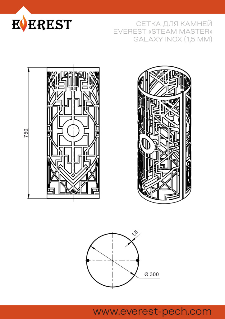Сетка для камней Эверест Steam Master Inox Galaxy 300 (1,5мм)
