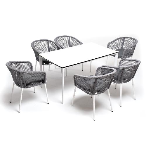 Обеденная группа 4SiS Малага на 6 персон со стульями Марсель, каркас белый, роуп светло-серый
