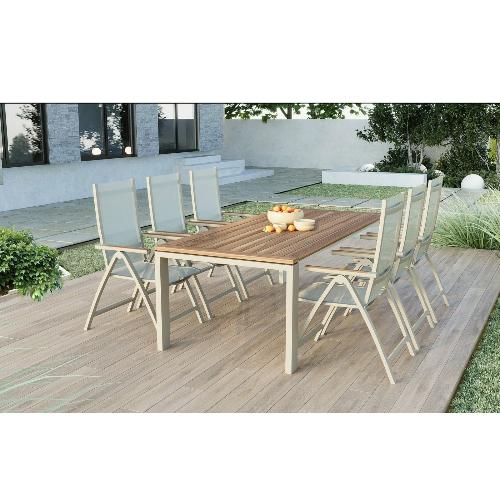Обеденный комплект Brafritid Lyon-Andy 220B+6R бежевый/натуральный, алюминий/тик