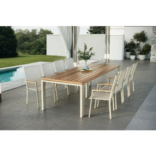 Обеденный комплект Brafritid Lyon-Andy 280B+8N бежевый/натуральный, алюминий/тик