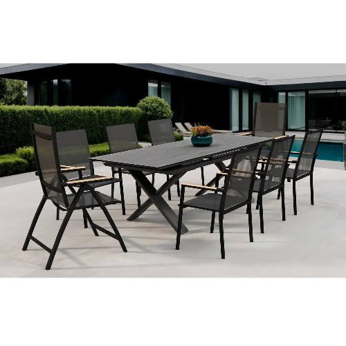 Обеденный комплект Brafritid Timra-Andy 240+6N2R антрацит/серый, алюминий/спеченный камень/тик