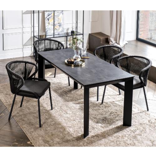 "Венето" обеденная группа на 4 персоны со стульями "Милан", каркас темно-серый, роуп темно-серый