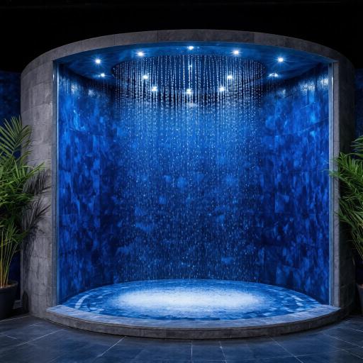 Программа 3: Боковой душ Посетителя массажирует холодный боковой душ. Освещение в душе меняется с белого дневного света на зеленый.