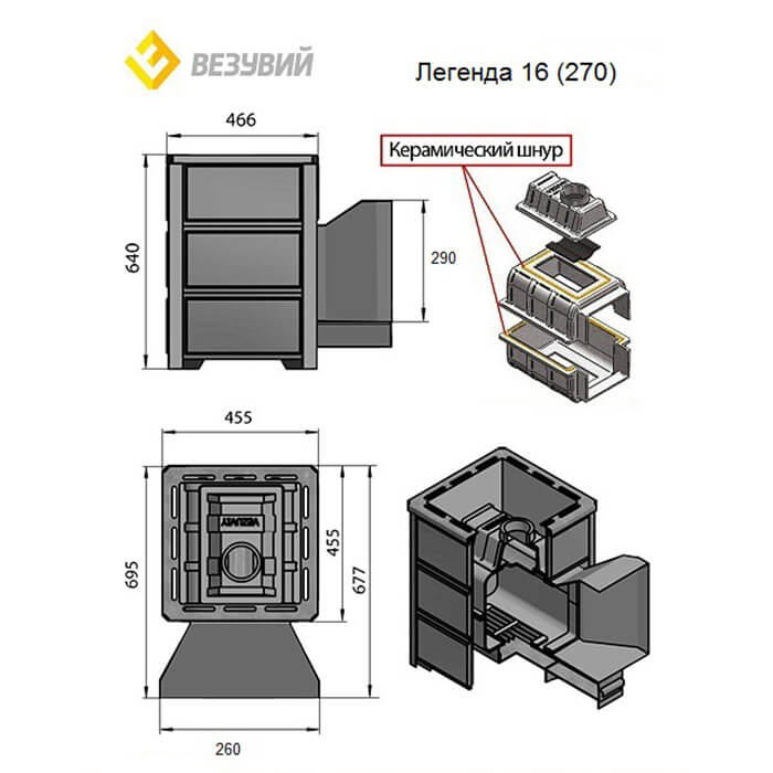 Банная чугунная печь Везувий Легенда 16 (270) змеевик