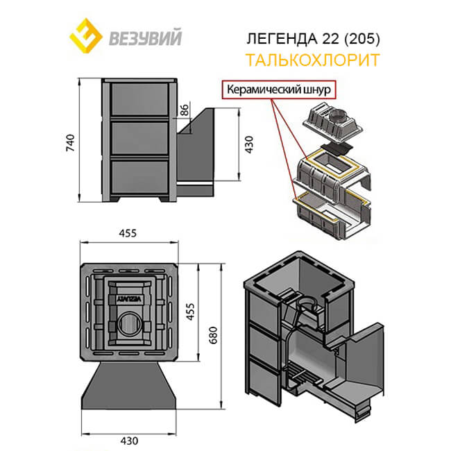 Банная чугунная печь Везувий Легенда 22 (205) змеевик