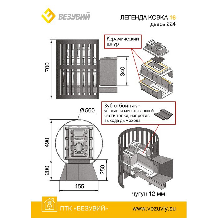 Инструкции, чертежи, документы - Банная чугунная печь Везувий Легенда Ковка 16 (224)