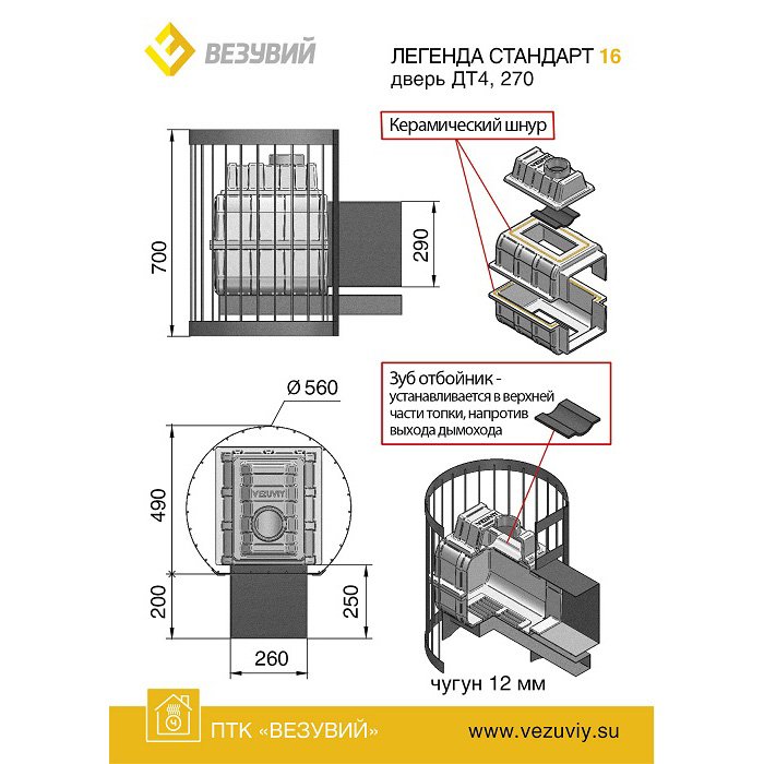 Инструкции, чертежи, документы - Банная чугунная печь Везувий Легенда Стандарт 16 (ДТ-4)