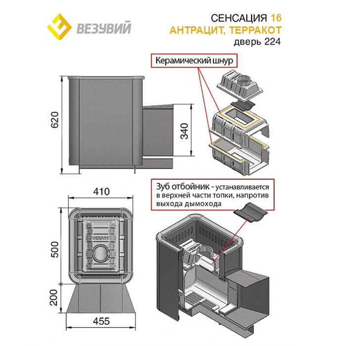 Инструкции, чертежи, документы - Банная чугунная печь Везувий Сенсация 16 Антрацит (224)