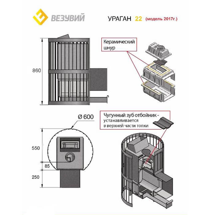 Инструкции, чертежи, документы - Банная чугунная печь Везувий Ураган Стандарт 22 (ДТ-4)