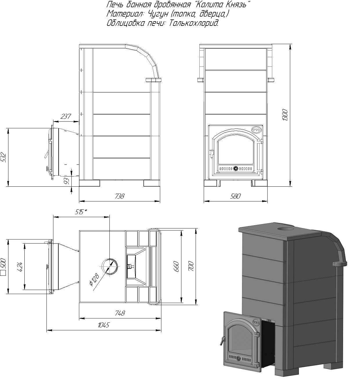 Инструкции, чертежи, документы - Банная печь Инжкомцентр ВВД Князь Калита в облицовке талькохлорит
