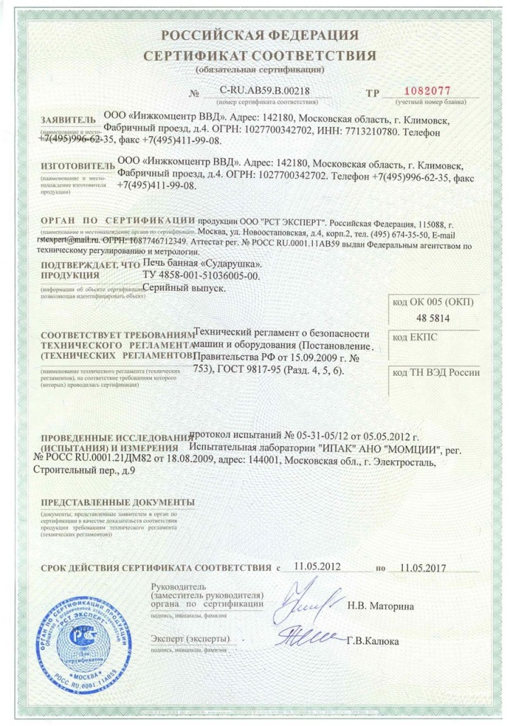 Инструкции, чертежи, документы - Банная печь Инжкомцентр ВВД Сударушка Семейная РК в облицовке талькохлорит с фасками