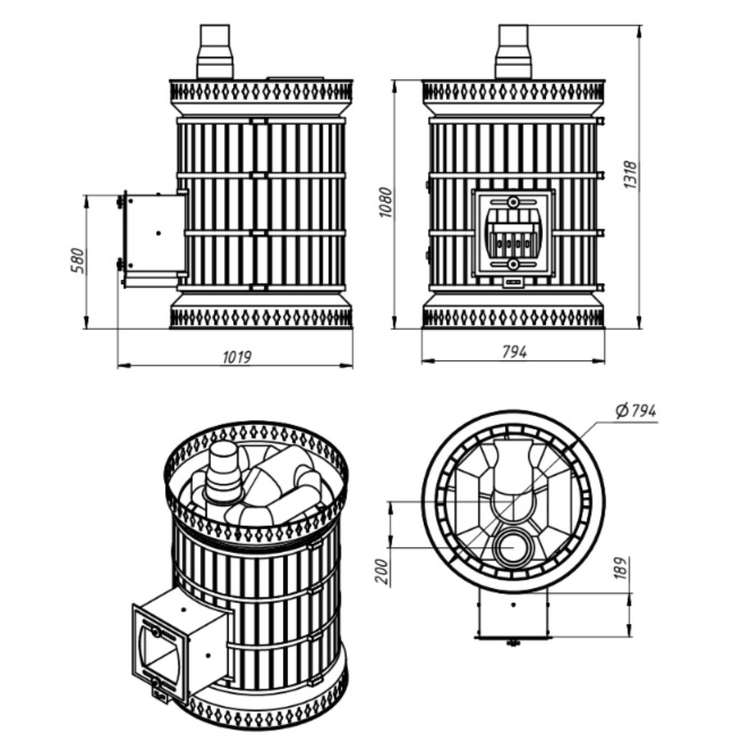 Инструкции, чертежи, документы - Банная печь КДМ Русская баня в змеевике