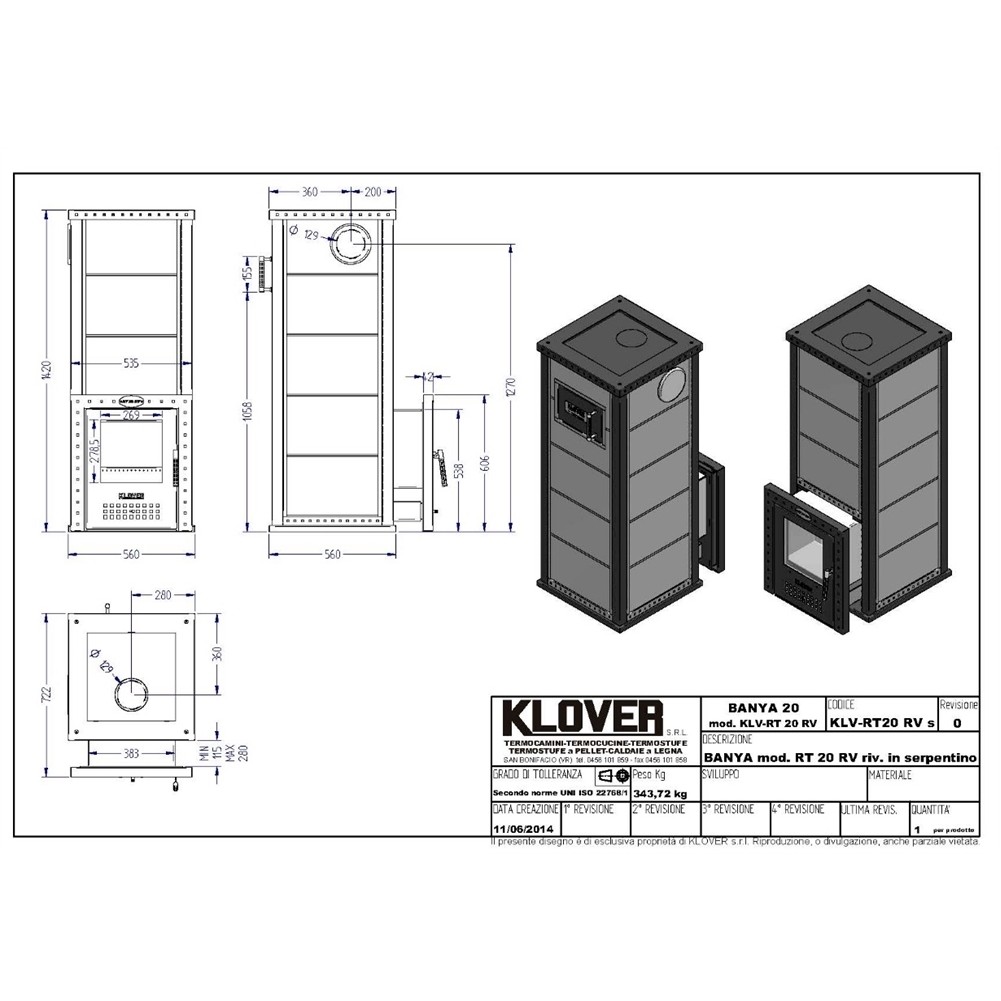Инструкции, чертежи, документы - Банная печь Klover RT 20-RV в облицовке жадеит
