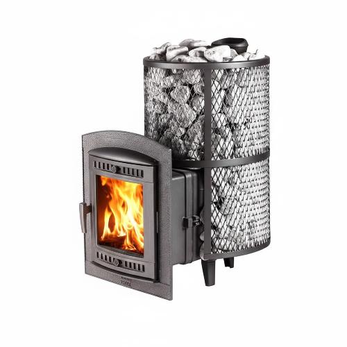 • Открытая каменка. Камни располагаются в специальном кожухе поверх топки, позволяя быстро прогреть помещение и давая экономию топлива.