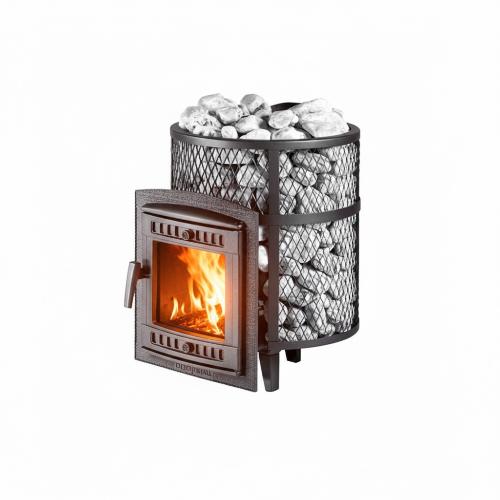 • Открытая каменка. Камни располагаются в специальном кожухе поверх топки, позволяя быстро прогреть помещение и давая экономию топлива.