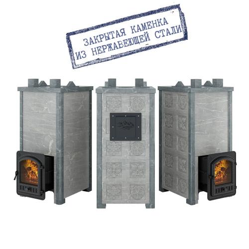 Банная печь Эверест Легкий пар Профи (каменка из нержавеющей стали) Талькохлорит, S-50 Резная 2 стороны