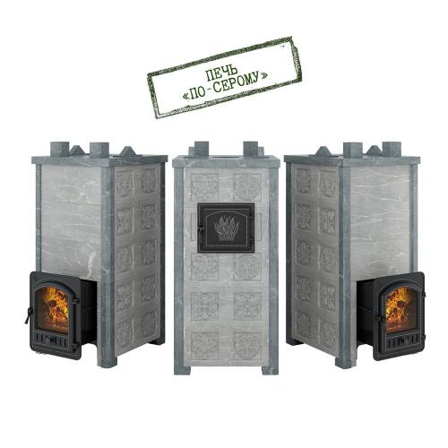 Банная печь Эверест Легкий пар Профи (каменка по-серому) Талькохлорит, S-50 Резная 3 стороны