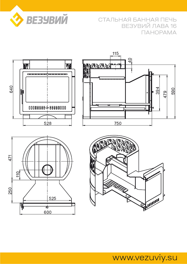 Инструкции, чертежи, документы - Банная печь Везувий Лава 16 (ДТ-3)