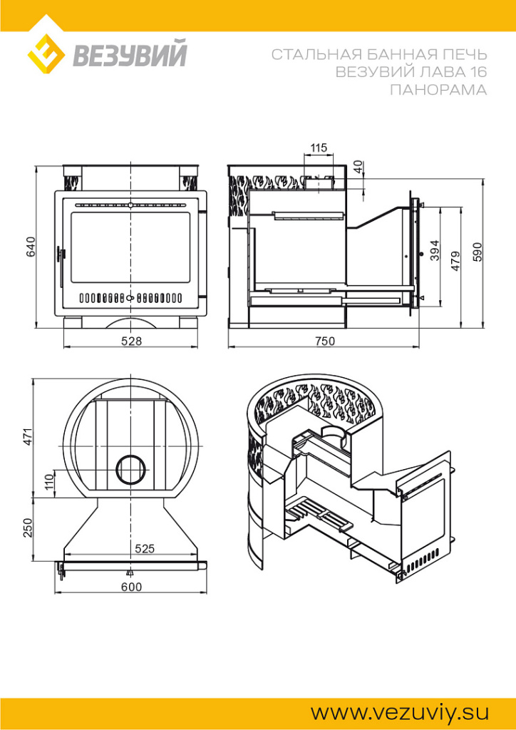 Инструкции, чертежи, документы - Банная печь Везувий Лава 16 Панорама М 2022