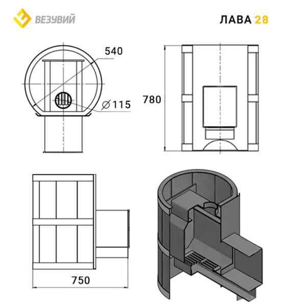 Инструкции, чертежи, документы - Банная печь Везувий Лава 28 (ДТ-4)
