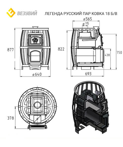 Инструкции, чертежи, документы - Банная печь Везувий Легенда Русский пар Ковка 18 (271) б/в