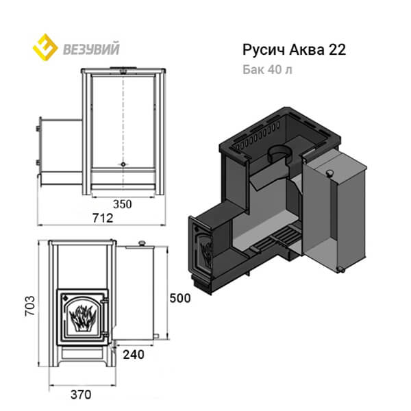 Инструкции, чертежи, документы - Банная печь Везувий Русичъ Аква 22 ДТ-4 (бак приобретается отдельно)