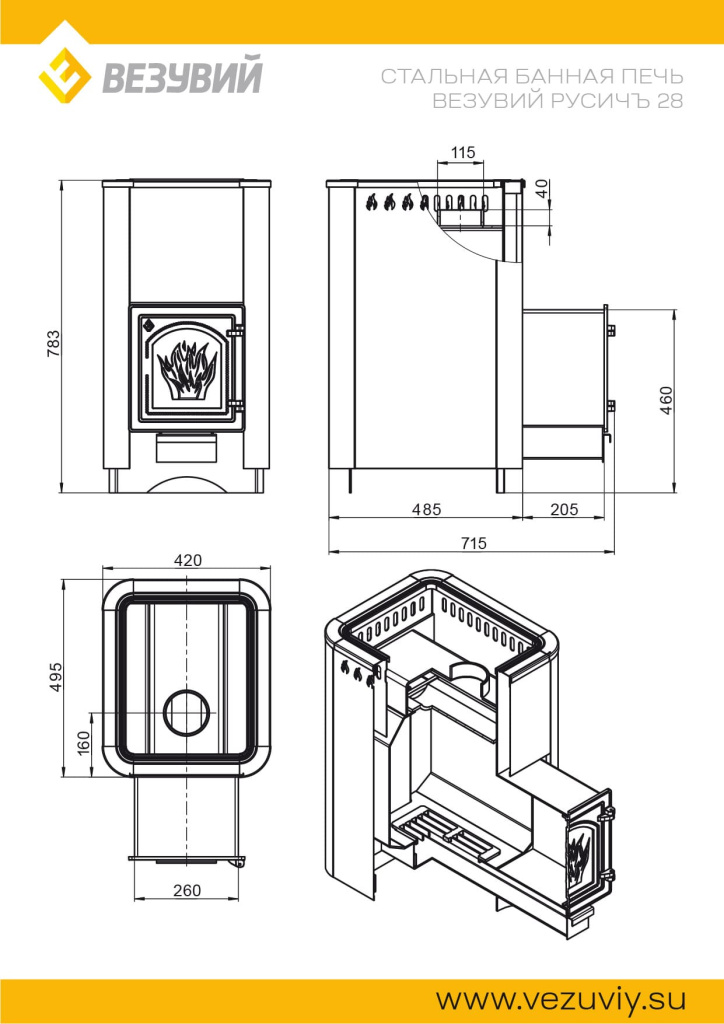 Инструкции, чертежи, документы - Банная печь Везувий Русичъ Антрацит 28 (ДТ-4) 2022