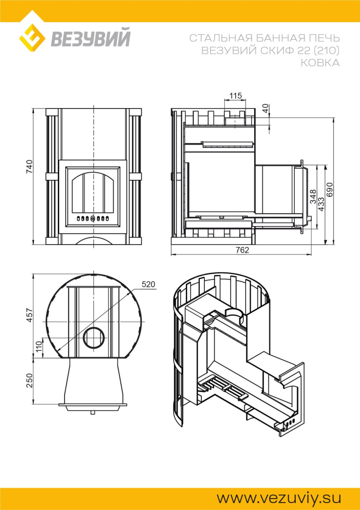 Банная печь Везувий Скиф 22 (210) Ковка 2022