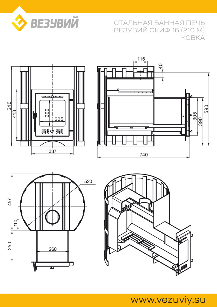 Инструкции, чертежи, документы - Банная печь Везувий Скиф Ковка 16 (210) М