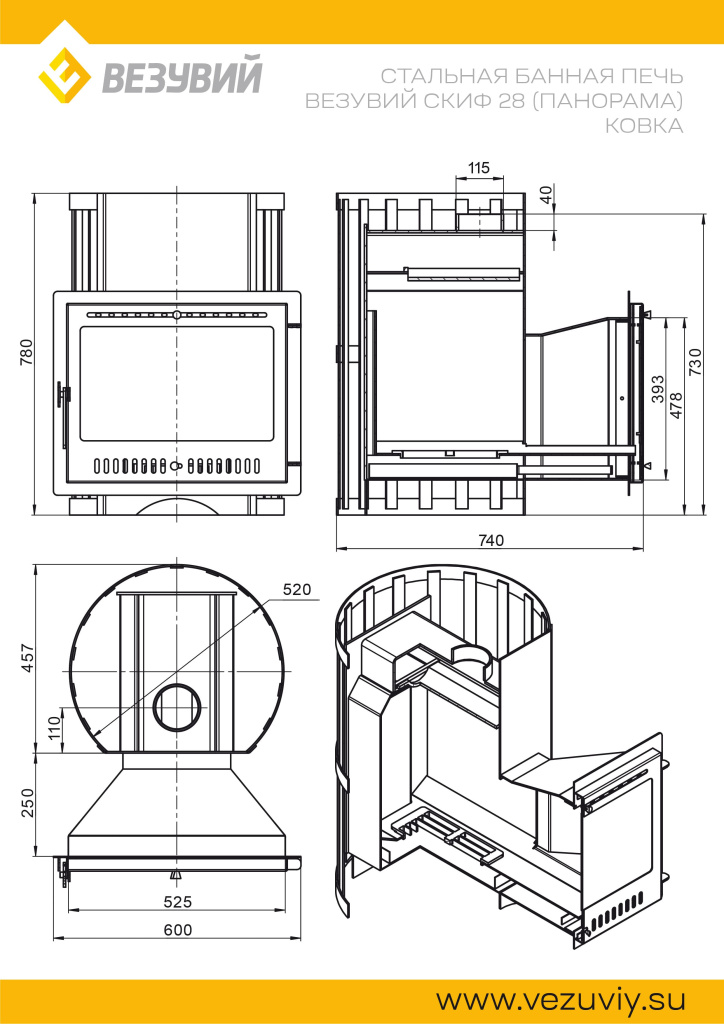 Банная печь Везувий Скиф Ковка 28 Панорама М 2022