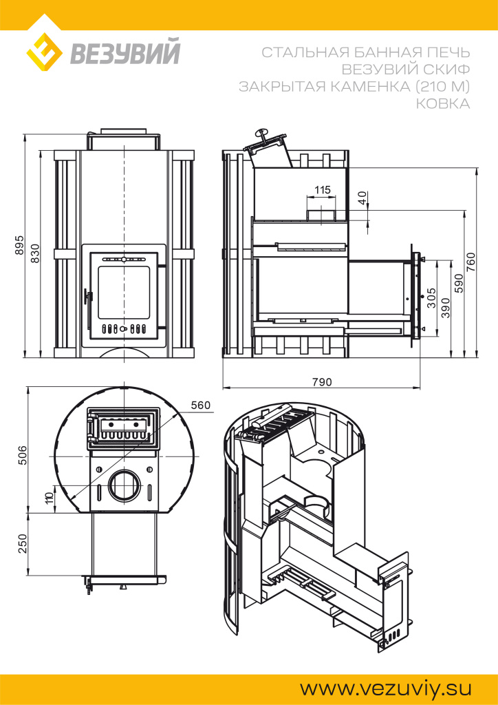 Инструкции, чертежи, документы - Банная печь Везувий Скиф с закрытой каменкой Ковка (210) М