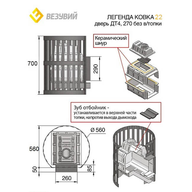 Инструкции, чертежи, документы - Чугунная печь Везувий Легенда ковка 22 (270) Б/В