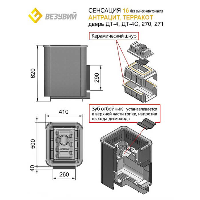 Инструкции, чертежи, документы - Чугунная печь Везувий Сенсация 16 антрацит (ДТ-4) Б/В