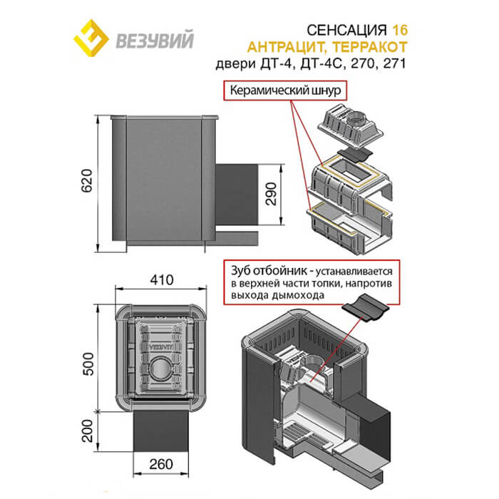 Инструкции, чертежи, документы - Чугунная печь Везувий Сенсация 16 антрацит (ДТ-4)