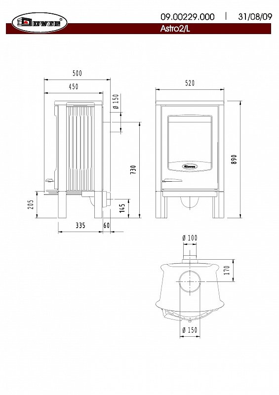 Инструкции, чертежи, документы - Дровяная печь Dovre Astro2/L/B