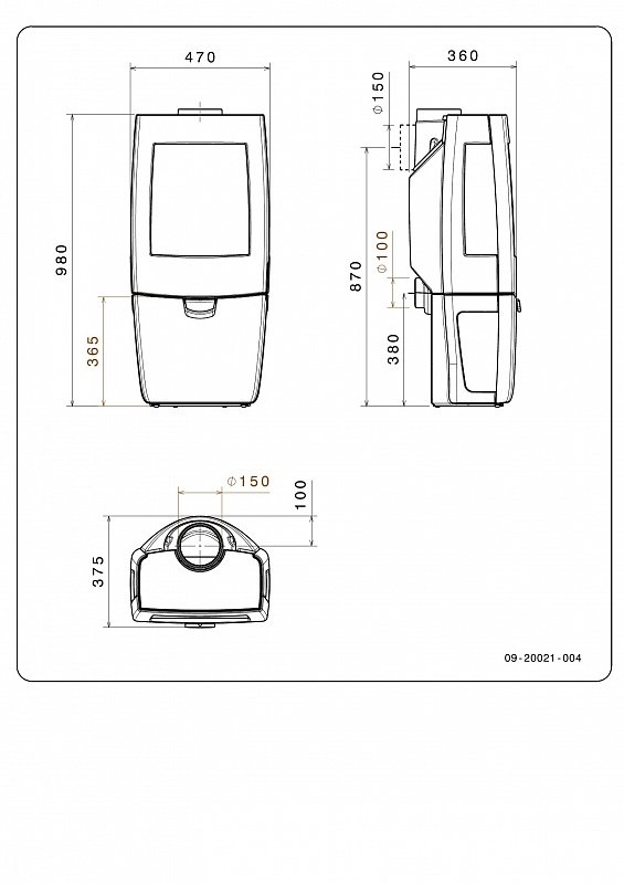 высота - 980 мм, ширина - 470 мм, глубина - 360 мм.