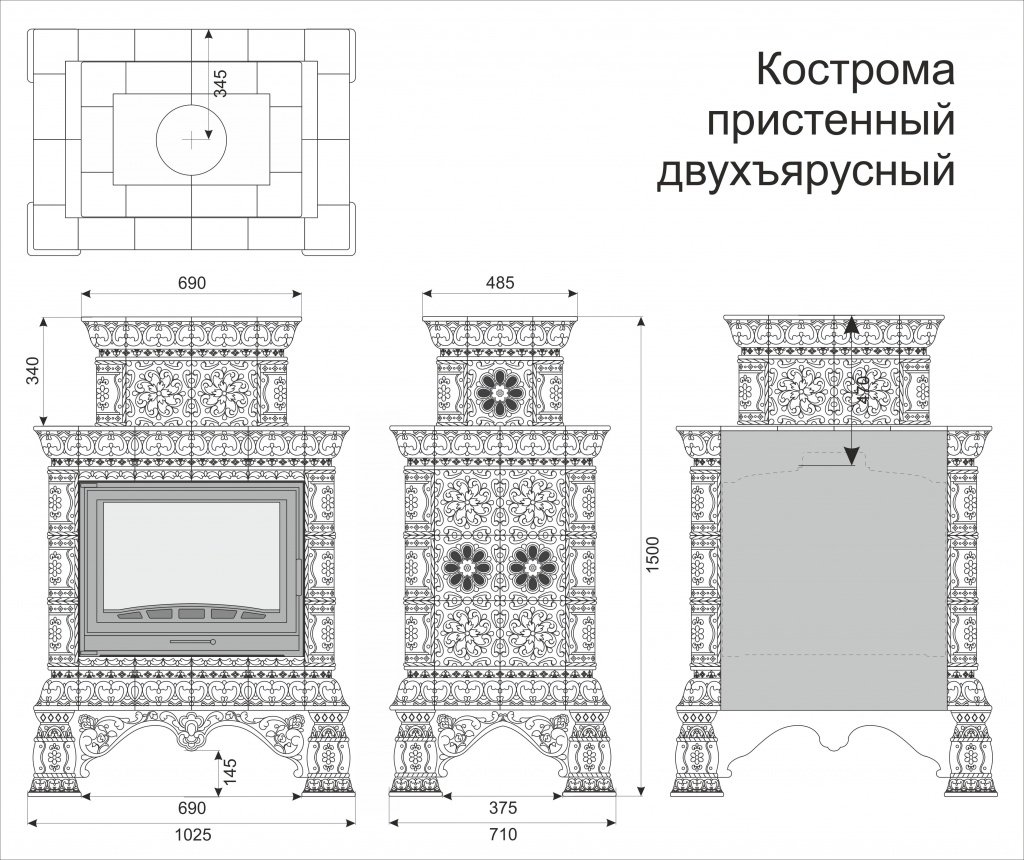 Инструкции, чертежи, документы - Готовый камин КимрПечь Кострома пристенный-двухъярусный
