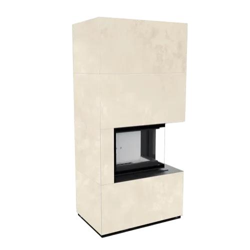 Каминокомплект Kratki Pro Floki в облицовке Fokos Talco, угловое стекло справа (светлая футеровка)