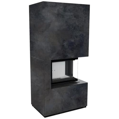 Каминокомплект Kratki Pro Floki в облицовке Oxide Nero, угловое стекло справа (светлая футеровка)