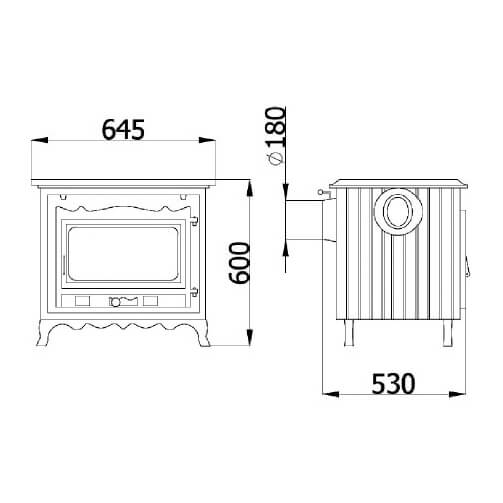 - Диаметр дымохода, мм 180