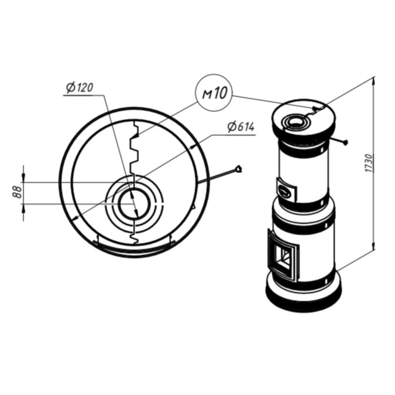 - Диаметр дымохода, мм 120