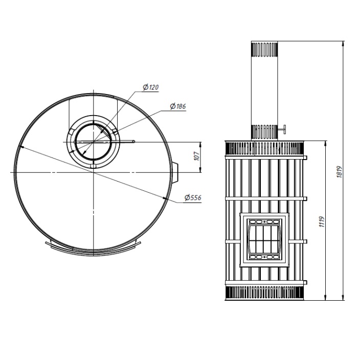высота - 1119 мм, ширина - 556 мм, глубина - 556 мм.
