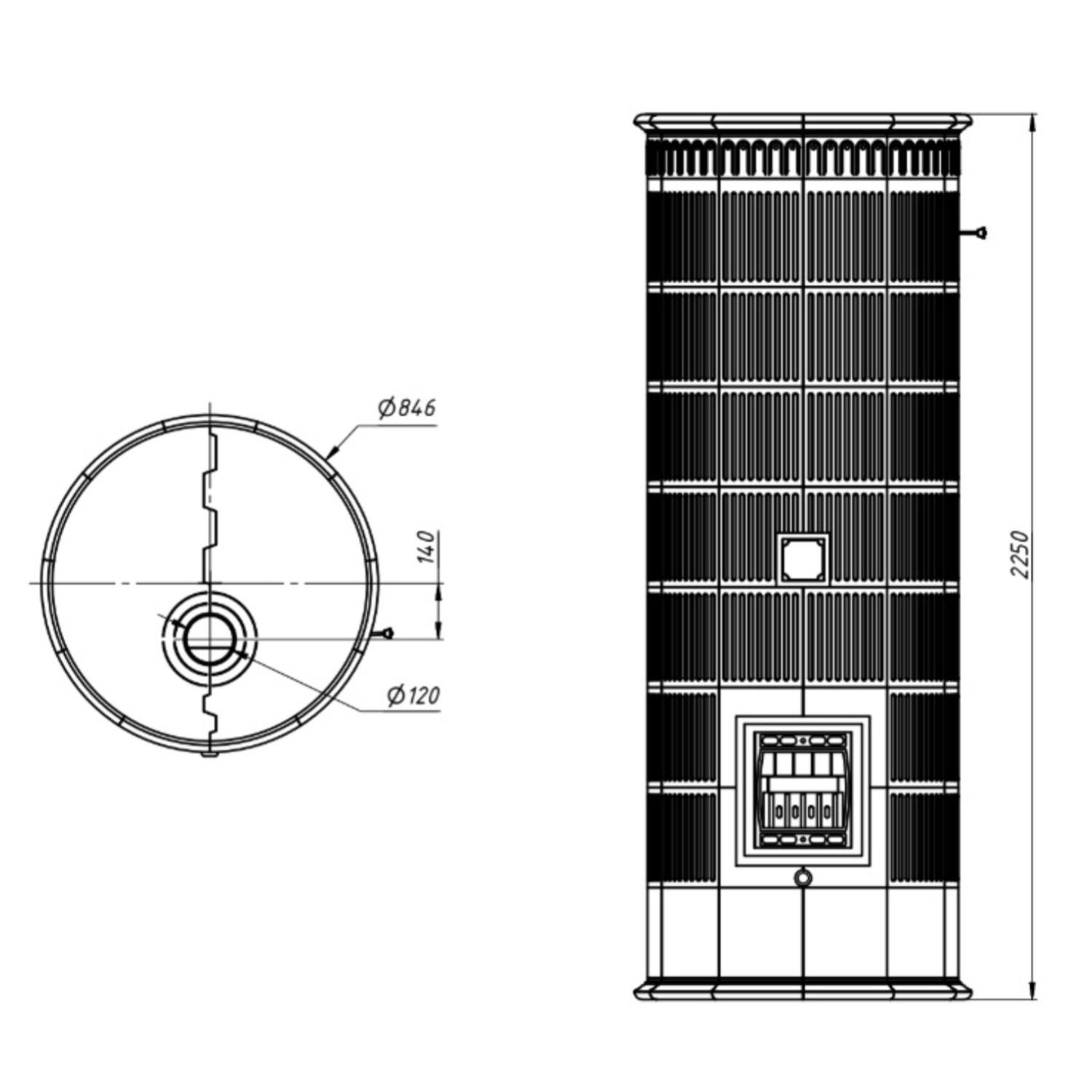 - Диаметр дымохода, мм 120