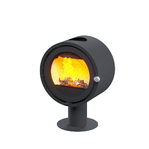 В серию входит модель на ножке, подвесная к потолку и на подиуме. Пространство под подиумом можно использовать как дровник.
