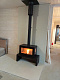 Имеется модификация с подиумом и встроенным дровником, что обеспечивает удобное хранение дров. Топочная камера облицована вермикулитом. Система вторичного дожига. Регулировка подачи воздуха и вторичного дожига осуществляется удобным рычагом. Дверь оснащена системой "чистое стекло".