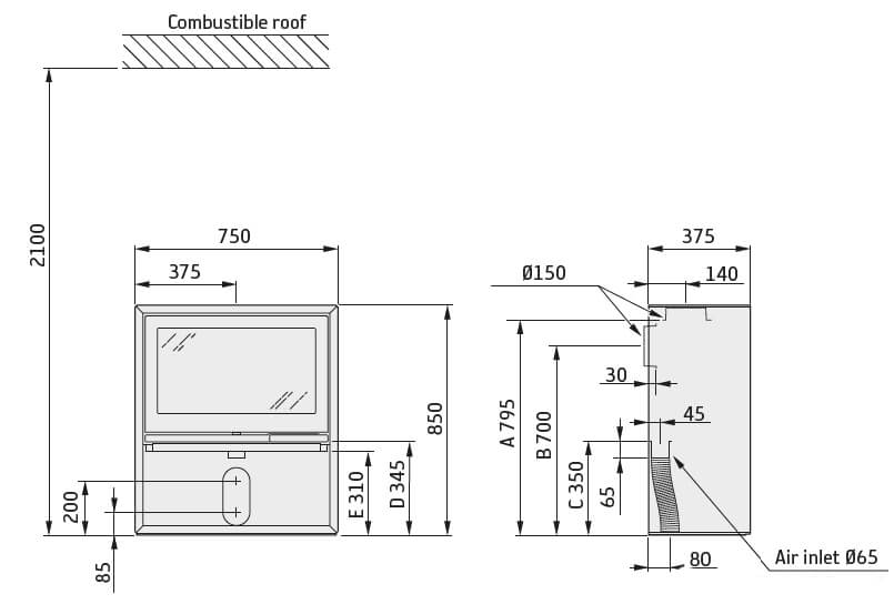 - Диаметр дымохода, мм 150