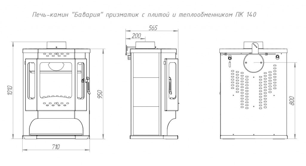 Инструкции, чертежи, документы - Печь-камин ЭкоКамин Бавария Призматик с плитой и теплообменником (ПК140)