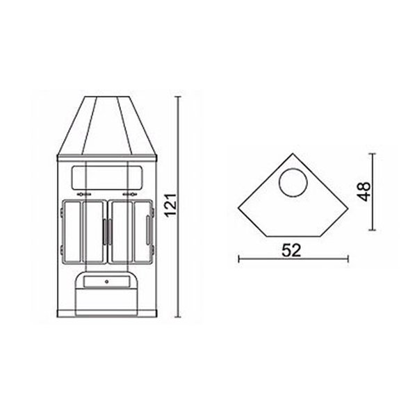 высота: 1210 мм, ширина: 520 мм, глубина: 480 мм.