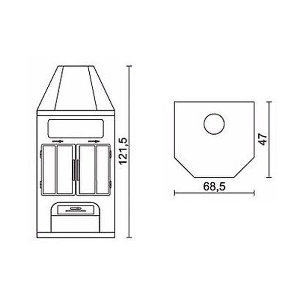 высота: 1215 мм, ширина: 685 мм, глубина: 470 мм.